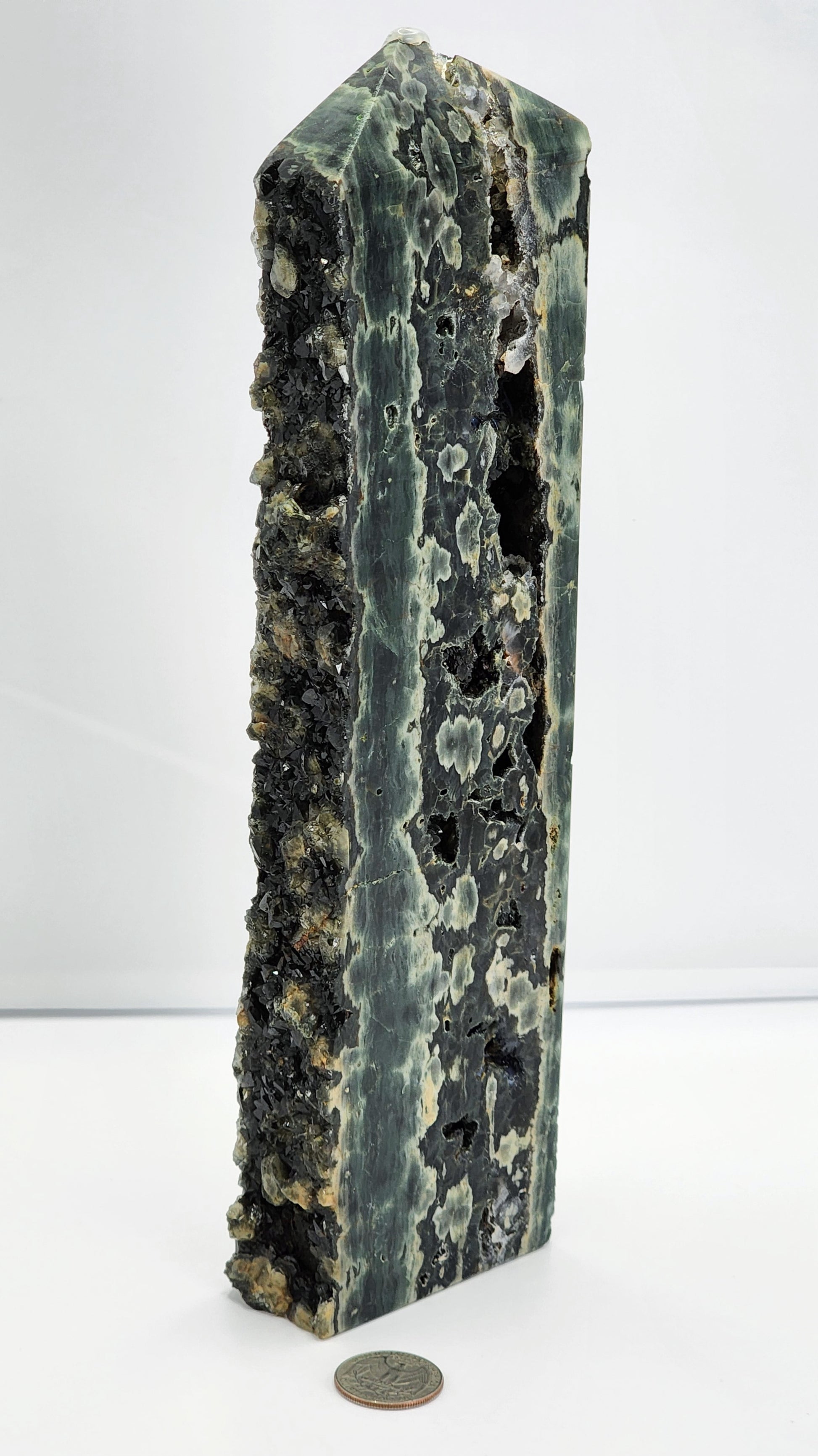 Large Druzy Dark Green Eighth Vein Ocen Jasper Tower 11.5"Tall Free Shipping!