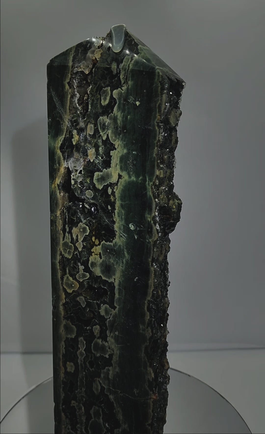 Stunning Dark Green Druzy Orbicular Eith Vien "Kambaba" Ocean Jasper Tower. Madagascar
